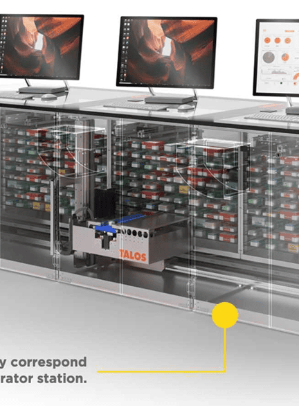 SINTESI nutzt den vertikalen Raum intelligent und reduziert Kommissionierzeiten erheblich. Die Roboter arbeiten präzise und zuverlässig, während Sie Ihre Lagerfläche optimal ausnutzen und Fehler minimieren.