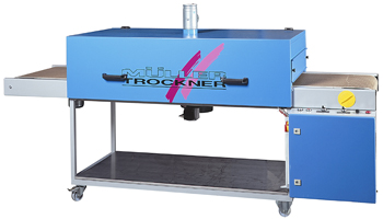 Stickoxyden und Kohlenmonoxid. Durch den geringeren Verbrauch sind die Betriebskosten geringer und deutlich günstiger als bei elektrisch betriebenen Trocknern. Für Textile Anwendungen gibt es den Trockner mit der Bezeichnung MegaShirt blue x®. Hier werden moderner Trocknerbau mit effzienter Energieausnutzung und wirtschaftlicher Betriebsweise vereinigt. Die Bandbreite des Trockners ist von 750-1500 mm erhältlich. Andere Größen auf Anfrage.